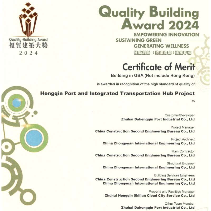 橫琴口岸及綜合交通樞紐開發工程榮獲2024年度“優質建筑大獎”優異獎